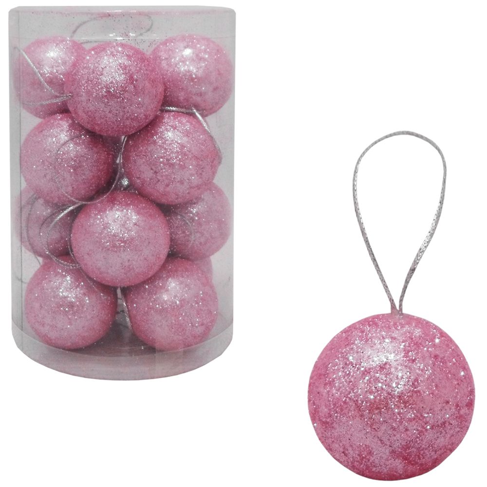 BOLA DE NATAL GLITTER ROSA COM 16 PECAS 3CM DE Ø NO TUBO