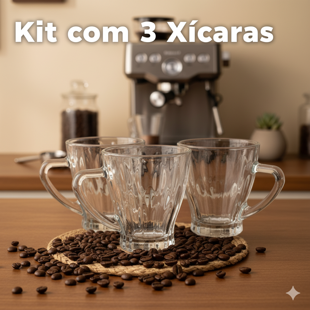 Aproveite seus momentos de café e chá com muito mais estilo com o Conjunto de 3 Xícaras de Vidro Amélia.