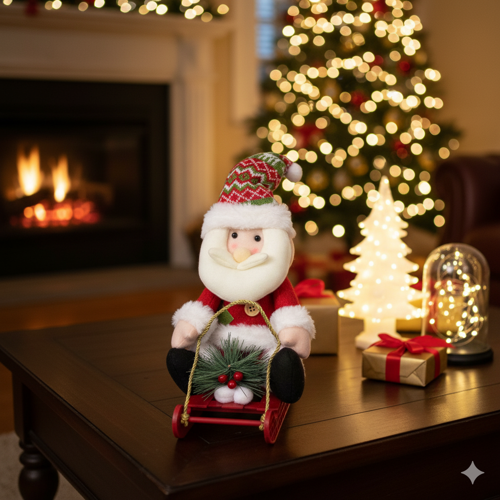Papai Noel de Trenó 33cm Decoração de Natal em Feltro Enfeite Natalino para Sala e Estante