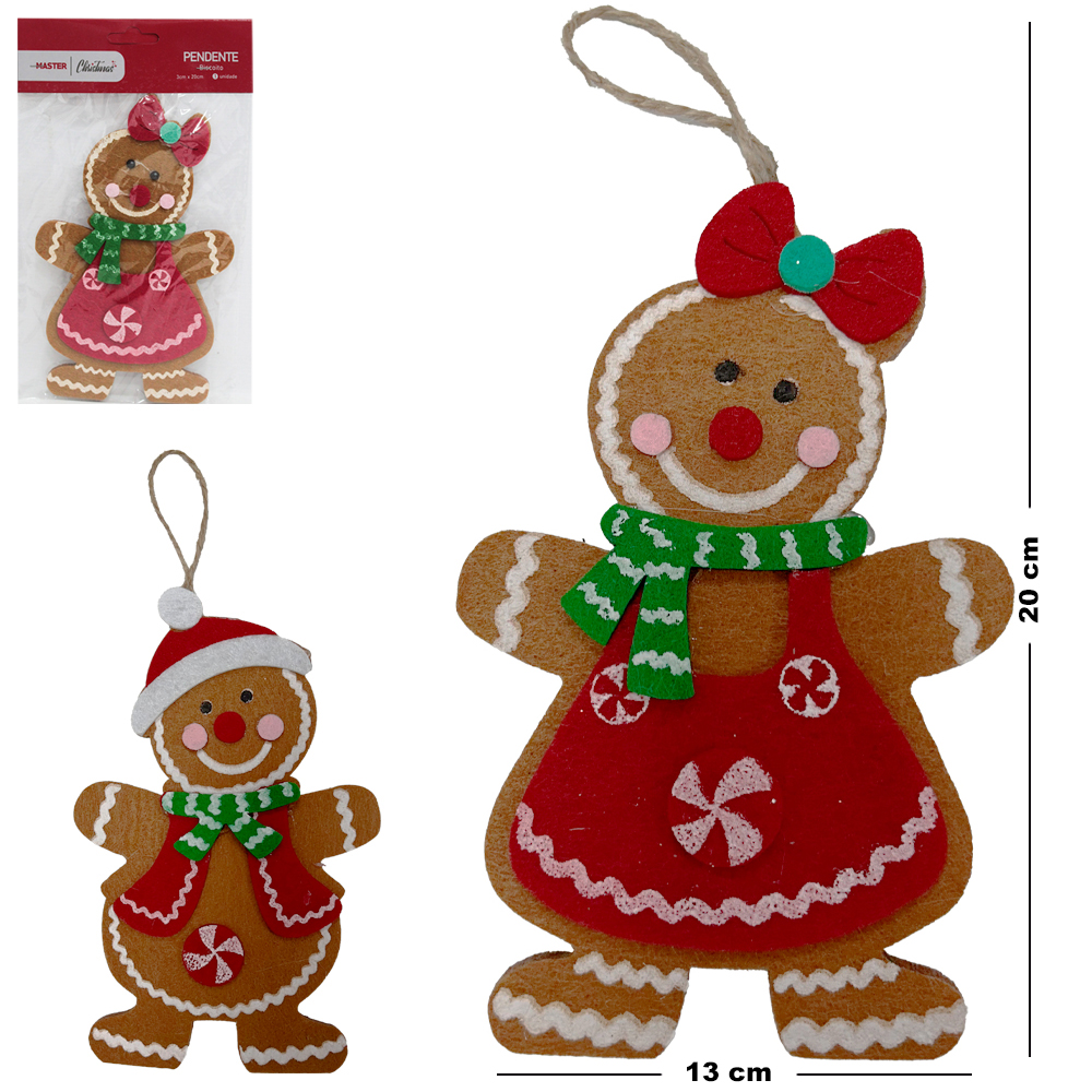 Os Pendentes de Biscoito de Gengibre em Feltro da Rio Master trazem o encanto do Natal para qualquer ambiente. Produzidos em feltro colorido, possuem acabamento detalhado e design divertido, perfeito para decorar árvores, guirlandas, portas, mesas ou compor cenários temáticos.