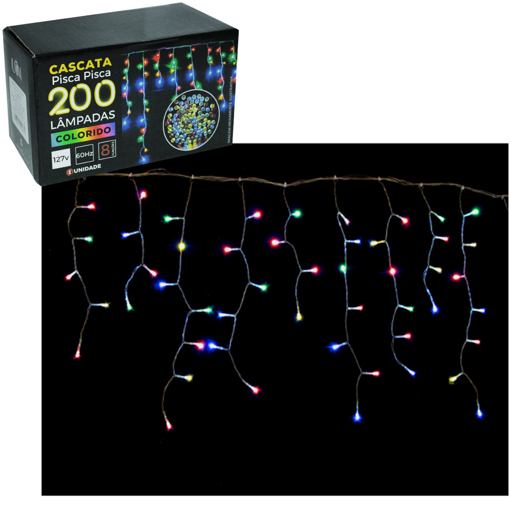 Ilumine suas festas com a Cascata de 200 LEDs Colors, perfeita para criar um ambiente festivo e vibrante. Com oito funções diferentes, esta cascata é ideal para decorar sua casa, jardim ou qualquer espaço, trazendo luzes coloridas e encantadoras.